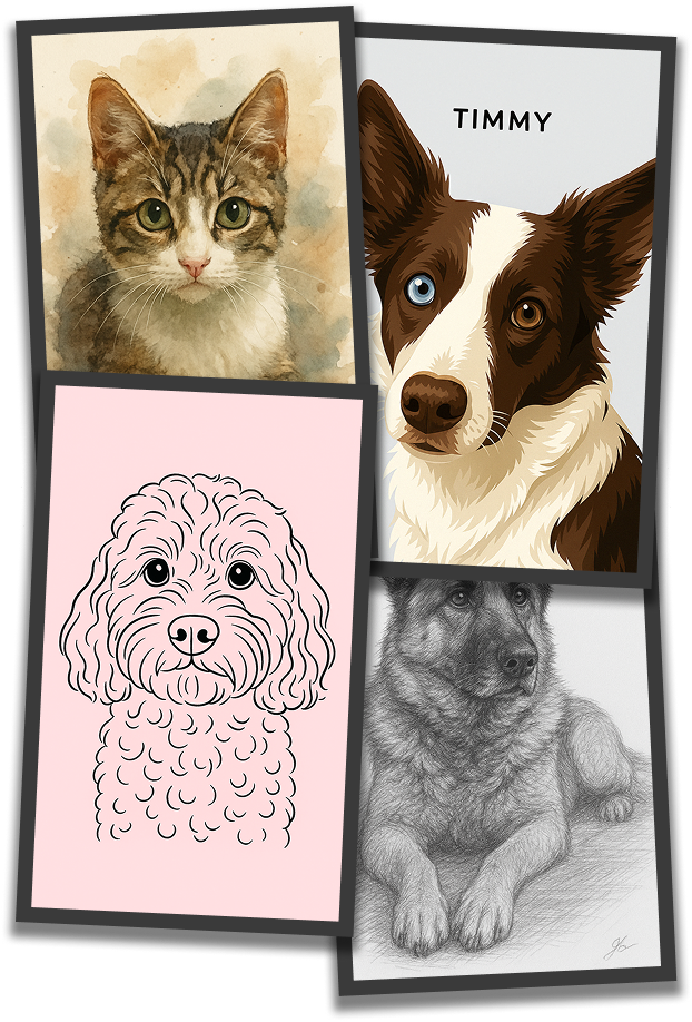 Get started creating beautiful art of your pet in seconds! Download, share and print your art in seconds!